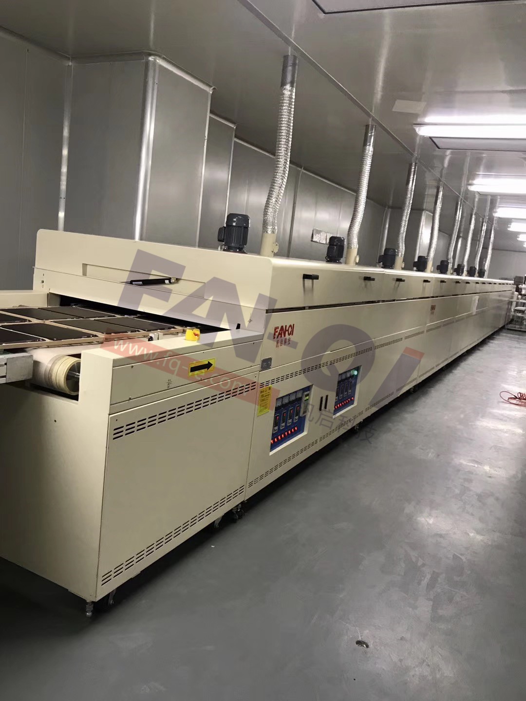 烘干線參考尺寸:內尺寸W600*D500*560mm*2箱 外尺寸W1450*D760*H1860mm溫度:常溫+20℃~+200℃,常用溫度低于150℃安裝耐高溫高效過濾器材質:內箱為不銹鋼板SUS304鏡面板,外箱為鋼板烤漆。